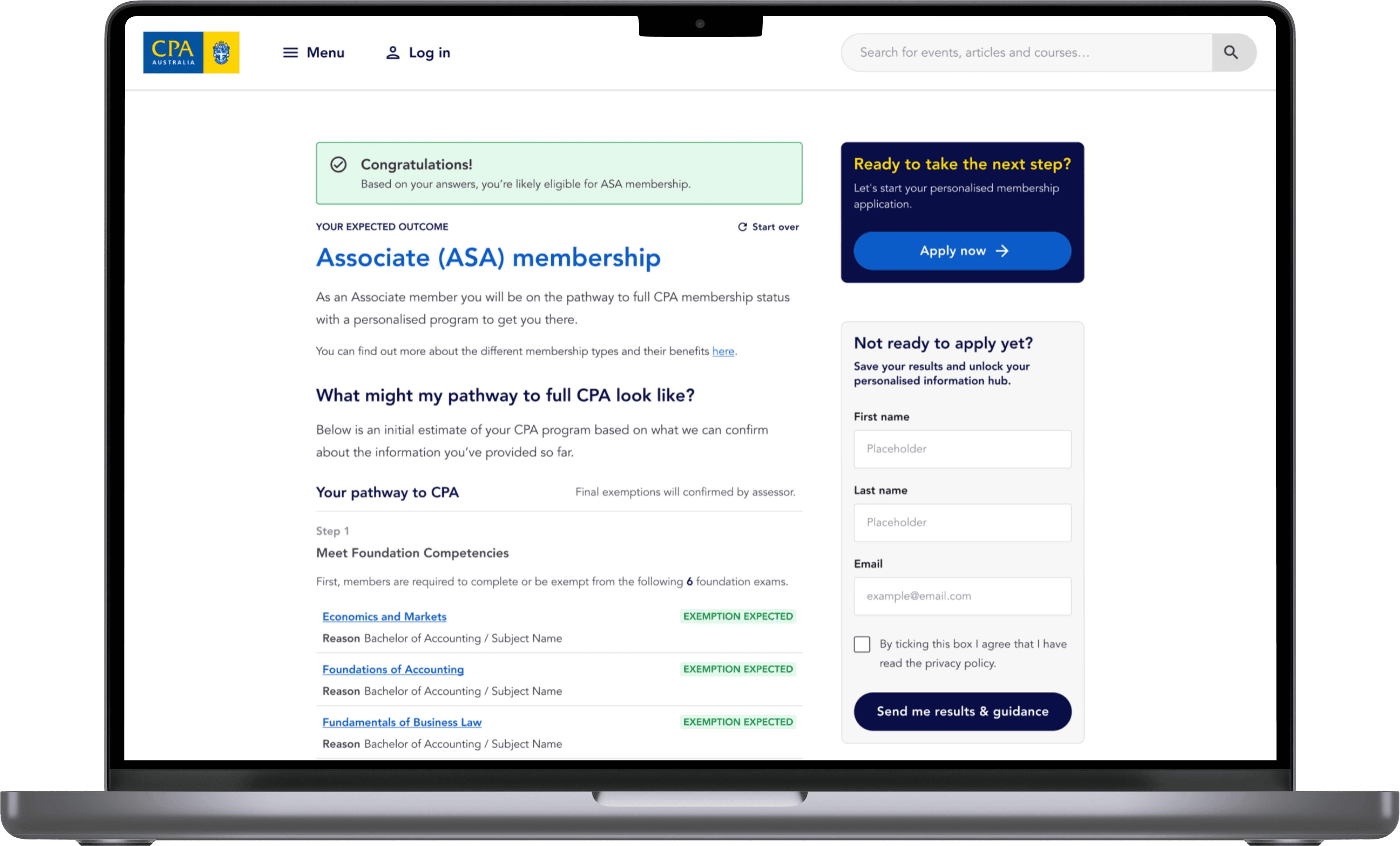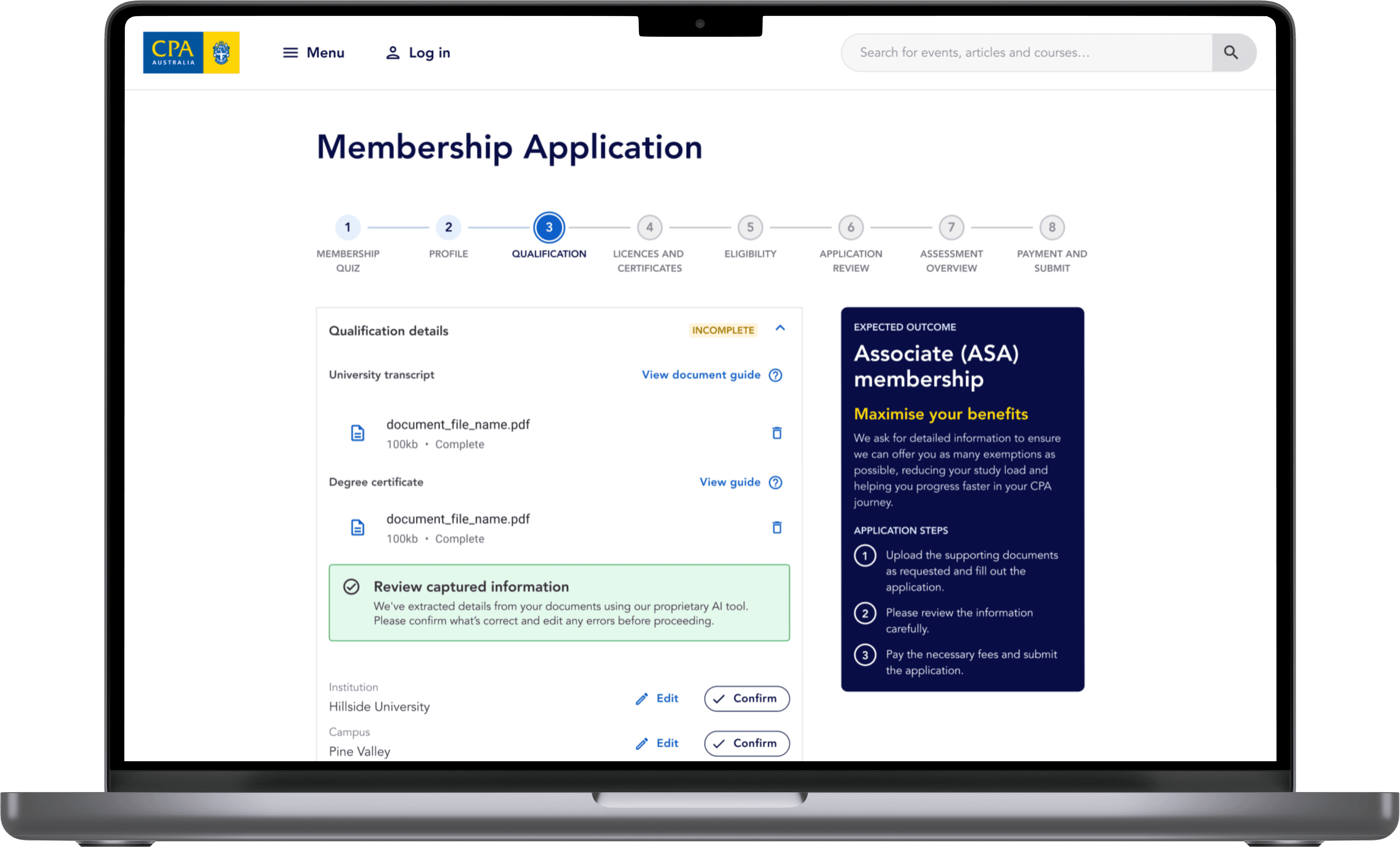 A streamlined membership application improving conversion and assessment efficiency.